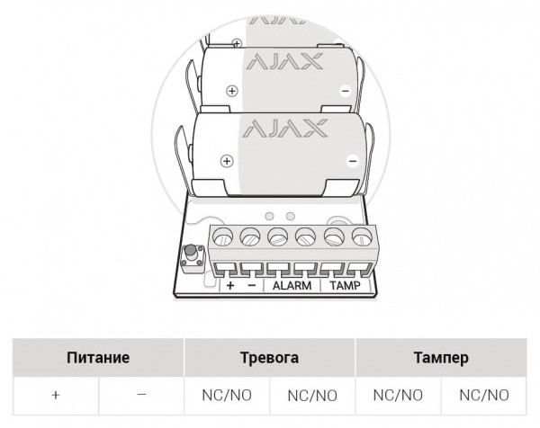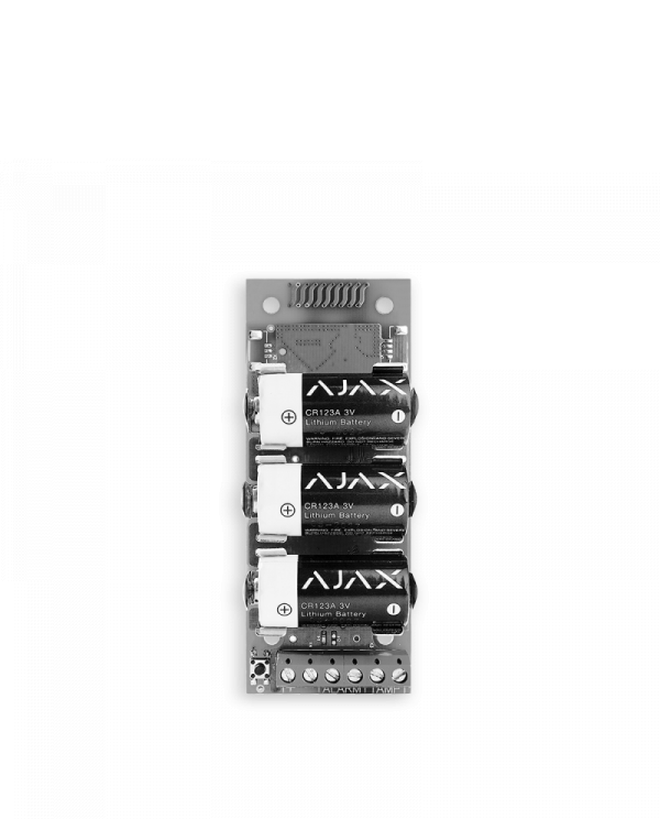 - Передает тревоги на Ajax Hub и предупреждает про срабатывание тампера внешнего датчика.