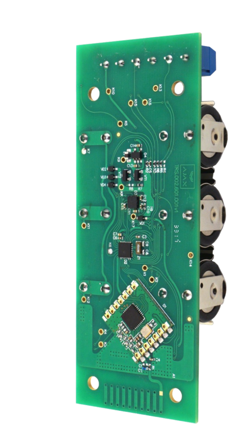 Ajax Transmitter - радиоканальный Jeweller (868 МГц) модуль (плата) для подключения к системе безопасности Ajax любых сторонних устройств с проводным выходом (уличных и комнатных - датчиков движения, ИК-барьеров, датчиков уровня жидкости и утечки газа, термореле и др.).