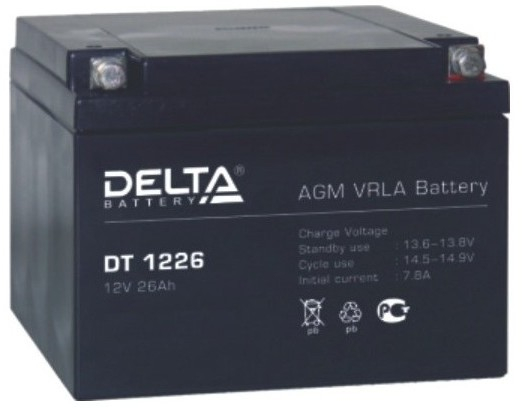 - Аккумулятор Аккумулятор 12 В, 26 Ач DT 1226 Delta