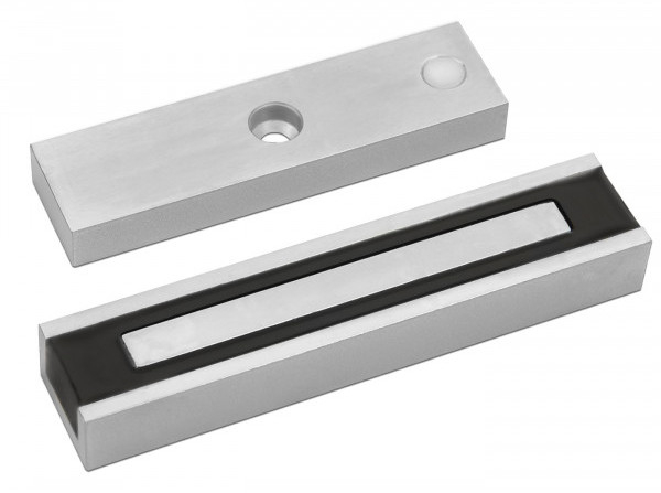 - Комплект 350Р - пластина для крепления якоря с внутренней стороны двери без сверления сквозного отверстия и возможностью регулировки положения на двери.