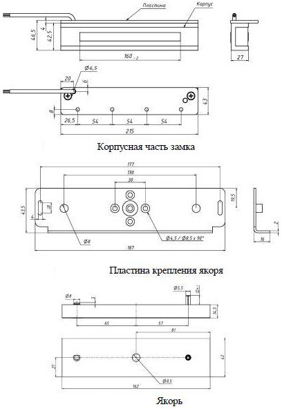 215х46,5х43 (замок), 162х42х14,5 (якорь)