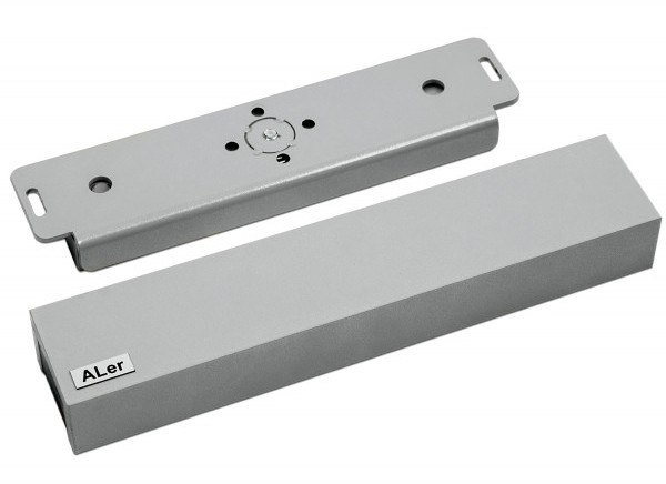 AL-350FВ-М-02 - малогабаритный электромагнитный, влагозащищённый (IP67), накладной (удерживающий, однодверный) замок с крепёжным комплектом 350Р (для якоря), крепёжной планкой или/и уголком (215х47х47 по заказу) в комплекте, без отсека для установки контроллера, в корпусе из алюминиевого сплава, с усилием удержания 350 кгс, напряжением питания - 12/24В, током потребления - 0,58А, диапазоном рабочих температур от -60 до +50оС, с габаритными размерами - 215х46,5х43мм, массой комплекта - 2,9 кг предназначен для запирания открывающихся наружу деревянных и металлических дверей толщиной от 35 до 70мм.