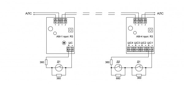 - АМ-1_4 прот.R3 (адрес метка без пит 1_4ШС типа сух конт подкл НО и НЗ)