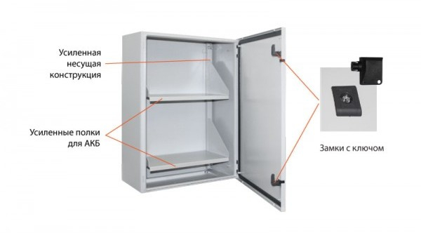 Отсек под термостат АКБ 100Ач - 2 шт. Металлический корпус, уличное исполнение, класс защиты IP56, мембранный кабельный ввод, замки, кабели для подключения АКБ в комплекте.