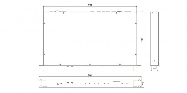 Блок устанавливается в 19-дюймовый аппаратный шкаф и работает как от источника переменного тока, так и от аккумуляторных батарей.