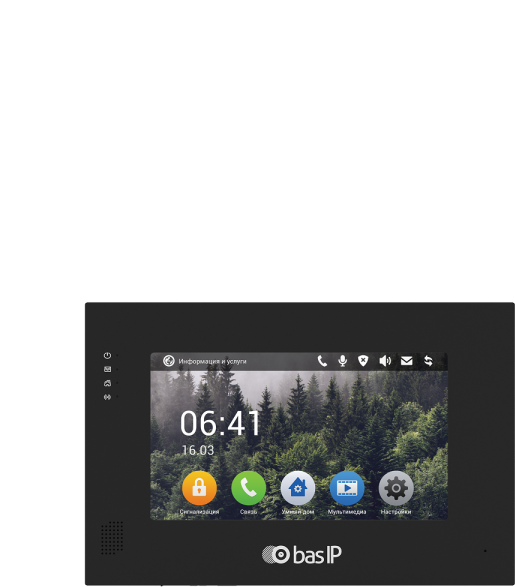 Видеодомофон индивидуальный Touch Screen 7 , c памятью на SD карту (до 32GB), видеоинтерком между домофонами, фоторамка, проигрыватель видеофайлов, умный дом. Встроенный Web-браузер. Просмотр 16 IP камер. Питание PoE. Поддержка SIP P2P. Размер 220х144х26 мм. Цвет - черный.