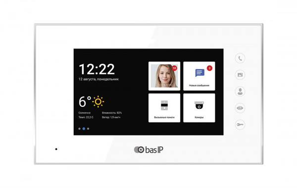 AQ-07L White - монитор видеодомофона без встроенной камеры, индивидуальный с сенсорно-ёмкостным экраном 7” TFT LCD, c памятью (фото и видео) на SDHC-карту (до 32GB), с возможностью подключения датчиков сигнализации, наличием: автоответчика, функции - фоторамки, проигрывателя видеофайлов, интеркома, опций - умный дом, подключения кнопки звонка, управлямым выходом при поступлении входящего звонка, возможностью установки сторонних приложений и приложений для Умного дома, встроенным Web-браузером, просмотром до 16 IP - камер, возможностью подключения дополнително: 9 вызывных панелей (индивидуальных и многоквартирных), 8 мониторов.