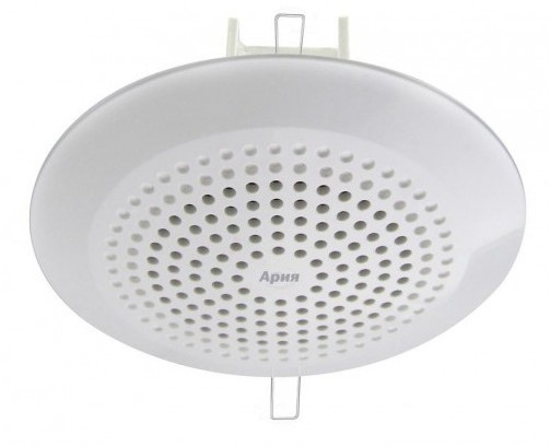 АРИЯ-10П - речевой потолочный (для фальш-потолков)/настенный (для гипсокартона, фанеры, оргалита) пассивный врезной оповещатель сопротивлением 8 Ом и мощностью 3; 5 или 10 Вт предназначен для воспроизведения сигналов ГО и ЧС, речевых сообщений и фоновой музыки.