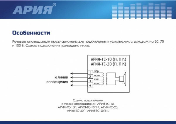 Особенности трансформаторной линии позволяют использовать оповещатели серии АРИЯ-ТС на большой удаленности от основного блока.