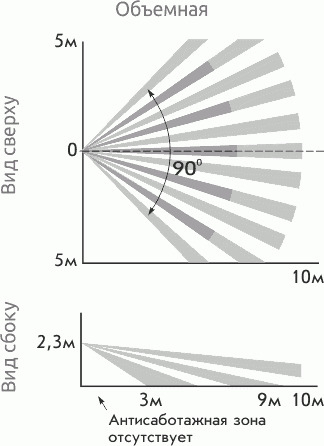 - объемная зона обнаружения (линза - "стандарт");