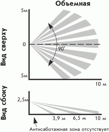 - объемная зона обнаружения (линза - "стандарт");