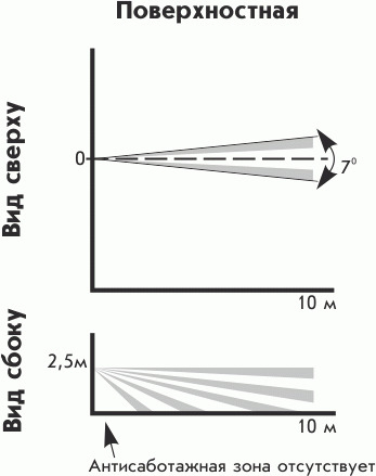 - поверхностная зона обнаружения (линза - "штора");