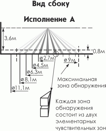 - объемная круговая зона обнаружения (линза - "стандарт");