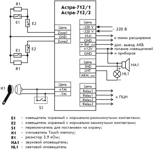 - извещатели и приемно-контрольные приборы, имеющие выход типа сухой контакт (релейный) и работающие на замыкание или размыкание;
