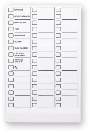 Модуль индикаторов, 8 индикаторов обобщенного состояния системы, 19 индикаторов состояния разделов, звуковой сигнализатор, кнопка отлючения звука, вход Touch Memory работа в системе Астра-Zитадель под управлением ППКОП Астра-Z-8945 исп. А, подключения к ППКОП по RS-485, подключение до 4-х расширителей Астра-863 исп.БР по линии SL два входа питания (основной и резервный), электропитание от источника напряжения 10-27В