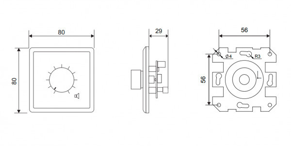 ROXTON AT-06 - регулятор громкости (аттенюатор) мощностью 6 Вт применяется для раздельного регулирования уровня громкости одного или нескольких громкоговорителей подключенных по 4-х проводной схеме к линии оповещения 100В.