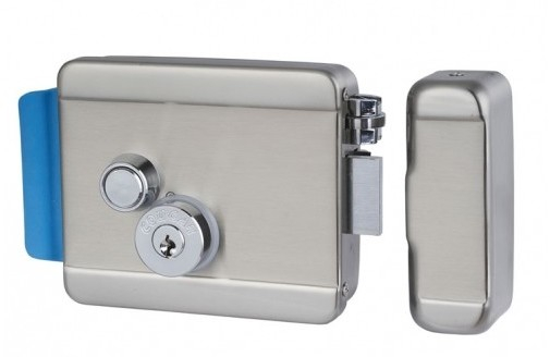 AT-EL101 - электромеханический замок закрытого типа, накладной, с блокировкой кнопки выхода, универсальный (дверь наружу, внутрь), открытием снаружи - ключом, ролик взвода пружины, нержавеющая сталь, 12В.