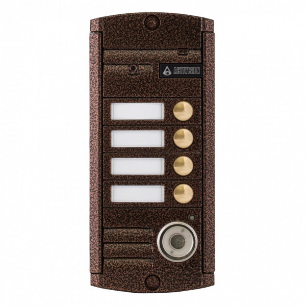 AVP-454 (PAL) ТМ медь - антивандальный, влагозащищённый, вызывной блок накладного типа на 4 абонента видеодомофона цветного изображения с разрешением 1000 ТВЛ и углом обзора 750, с встроенным считывателем Touch Memory.