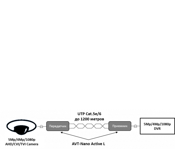 AVT-Nano Active L - активный комплект для передачи 1Мp-5Мp AHD/TVI/CVI по витой паре до 1200 метров.