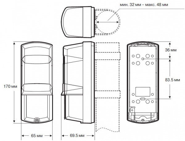 ИК активный, 2-лучевой, дальность до 40 м (улица), 100 м (помещение), -35…+55 град. С
