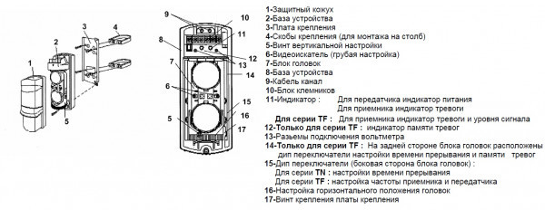AX-70TN (Optex) - извещатель охранный линейный оптико-электронный 2-х лучевой активный в составе блоков: излучателя и приёмника предназначен для обнаружения проникновения через периметр охраняемого объекта и формирование извещения о тревоге путем размыкания (1 НЗ) выходных контактов оптоэлектронного реле.