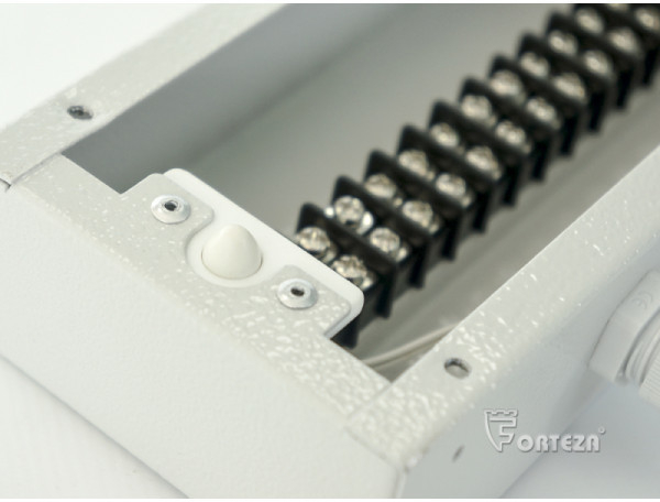 Изделие оборудовано тамперной кнопкой для сигнализации о несанкционированном доступе и 1-ой клеммной колодкой для подключения 12-и проводных линий.