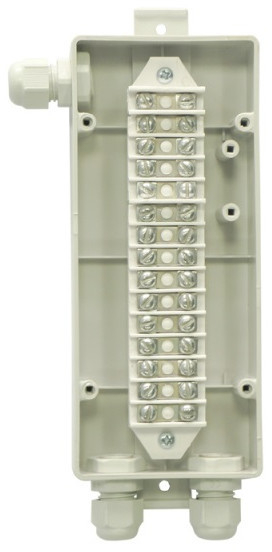 Изделие оборудовано тамперной кнопкой для сигнализации о несанкционированном доступе и 1-ой клеммной колодкой для подключения 15-и проводных линий.