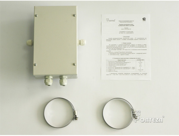 Конструкция коробки предусматривает возможность крепления её на круглую опору (диаметром 70 - 90мм) посредством 2-х хомутов (в комплекте поставки), а также на стену через крепёжные отверстия (под заказ).
