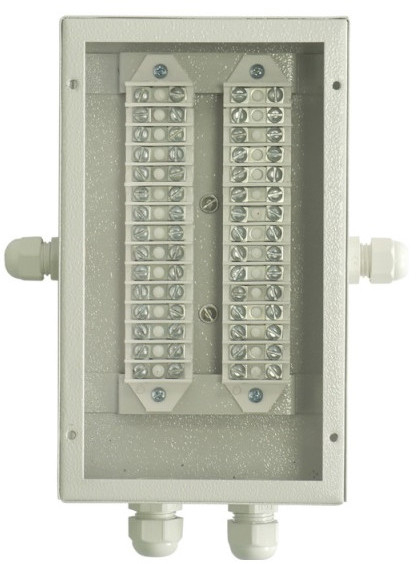 Изделие оборудовано тамперной кнопкой для сигнализации о несанкционированном доступе и 2-мя клеммыми колодками для подключения 30-и проводных линий.