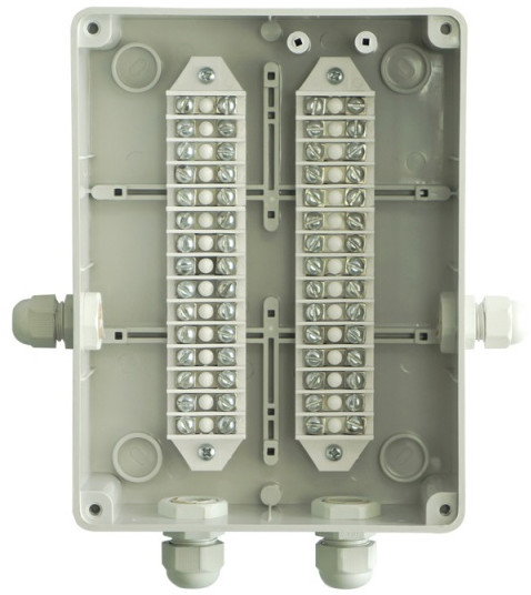 Уличная распределительная коробка с гермовводами, крепление проводов сечением 6мм2 под винт