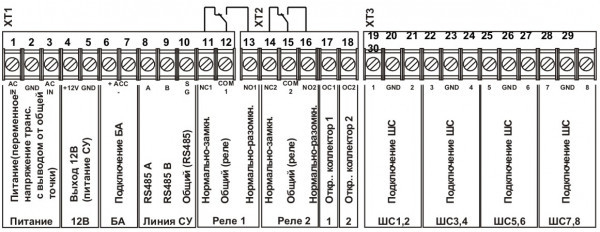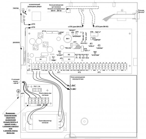 - разъем подключения блока интерфейсного БИ-01 (XT6, на плате БЦП), предназначенного для:
