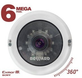 6 Мп, 1/1.8 КМОП SONY Exmor R, 0.01 лк (день)/0.003 лк (ночь), 3072x2048, 60 к/с, 4 потока H.264/MJPEG, объектив fisheye, управление ePTZ, аппаратное устранение искажений Hardware Dewarping, механический ИК-фильтр, DWDR, 3DNR/SPQ, встроенный микрофон и динамик, microSDXC (до 64 ГБ), 12В/24В/PoE