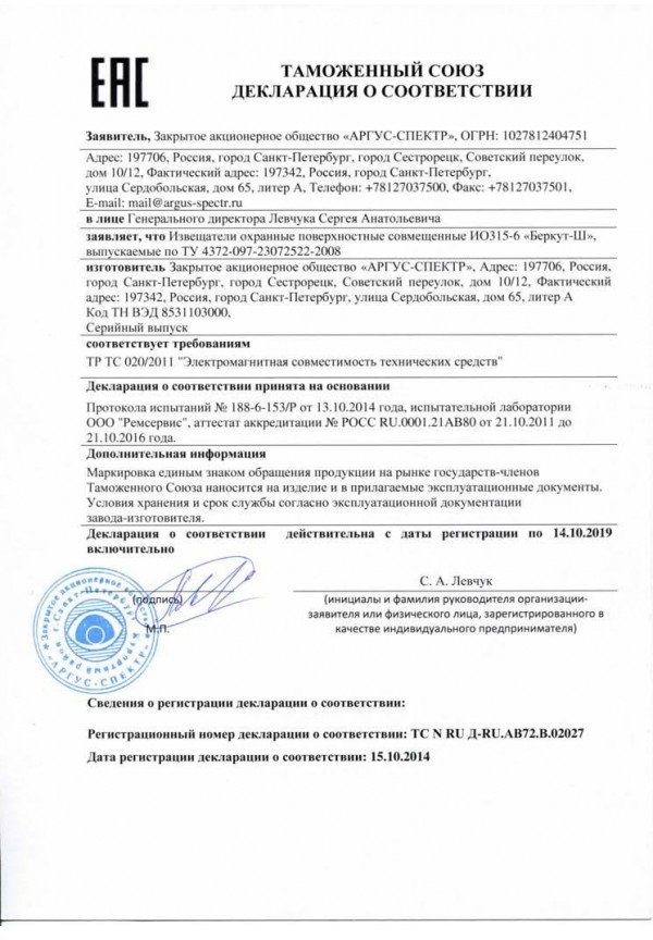 Извещатели разбития стекла акустические