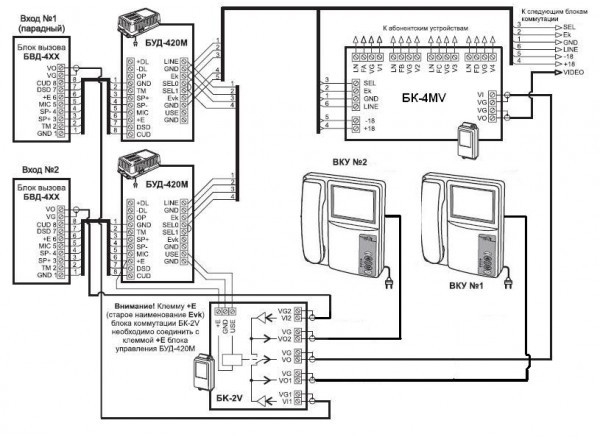 Блок коммутации видеосигнала от двух блоков вызова для видеодомофонов многоабонентских серии (М, 400).