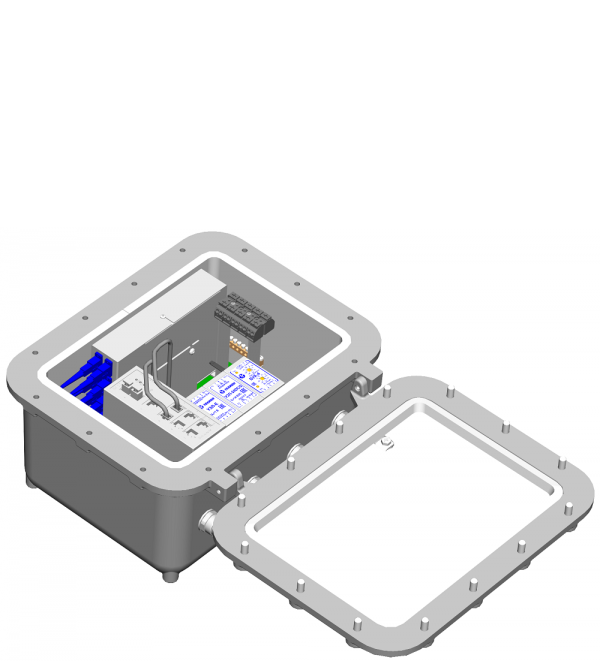 Блок коммутации и управления. Габаритные размеры (без гермовводов) 364х284х215 мм. -60 С до +50 С 1Ex d IIB+H2 T5 Gb, IP66.