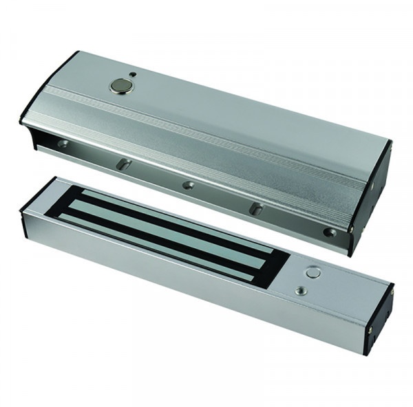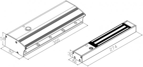 Накладной электромагнитный замок, 12V DC, 500mA или 24V, 250mA усилие 300 кг, магнит 323x42.8x35.4 mm якорь 330х88.7, 4.5 кг. Офисный дизайн. Изготовлен в корпусе дверной ручки