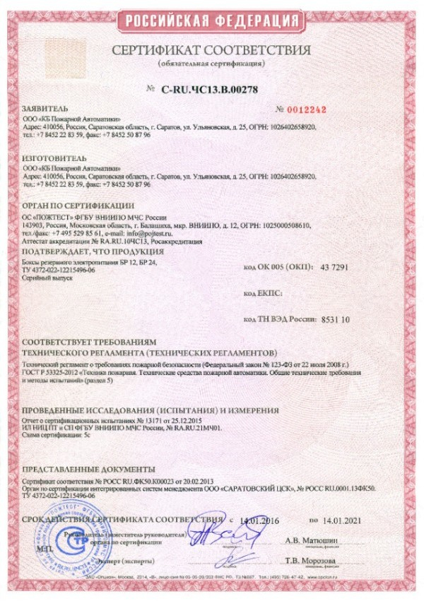 Бокс резервного электропитания серии БР 24.БР 24 предназначен для подключения к источникам с номинальным выходным напряжением 24 В ИВЭПР 24/1,5, ИВЭПР 24/2,5, ИВЭПР 24/3,5, ИВЭПР 24/5. Защита АКБ от перезаряда и от переполюсовки.Световая индикация.Вход. напряжение сети 140-265 В.Напряж. на клеммах +Р , -Р при подключенных АКБ - не более 28 В.Макс. ток зарядки каждой АКБ 1,0 А.Корпус под две АКБ по 17 Ач.Макс. суммарная ёмкость АКБ 34 Ач.Габаритные размеры 372 86 250мм.Масса без АКБ не более 2,5 кг