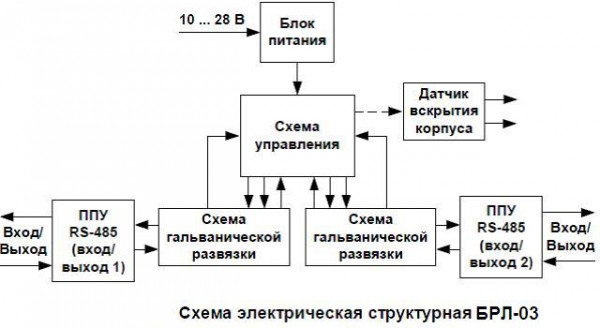 БРЛ-03, корпус IP 65 - блок ретранслятора линейный (репитер интерфейса RS-485 с гальванической развязкой), в пластмассовом корпусе, без встроенной консоли управления, со степенью защиты - IP65 входит в состав ИСБ "Индигирка".