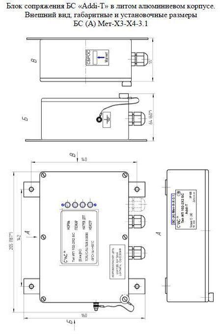 БС (А) Мет1 - блок сопряжения Addi-T в алюминиевом корпусе с коррозионным покрытием (Лак УР-231), искробезопасный (без датчиков тепловых многоточечных - ДПТ - приобретаются отдельно), с состоянием контактов реле: КР - Неисправность (НО) и Пожар (НЗ), степенью защиты (IP65),с функциями контроля термо-ЭДС (дифференциальный канал) и электрического сопротивления линии датчика (максимальный канал), с определением состояния «Пожар» по превышению контролируемой величиной заданного порога в одном из каналов.