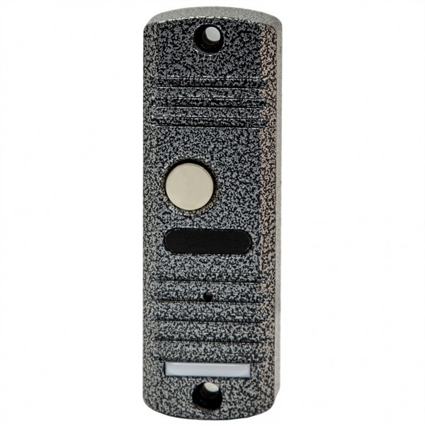 Антивандальная видеопанель на одного абонента, ПЗС Матрица 1/4 CMOS камера, Разрешение 700 ТВЛ, Угол обзора камеры 53 гр (горизонталь), ИК подсветка 66 гр 2 м, Ток потребления не более 0,2 А, Источник питания стабилизированнный 12 Вольт (от монитора видеодомофона), Мощность динамика максимальная 0,5 Ватт, Рабочая температура -40...+50 С