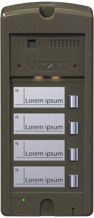 Блок вызова на 4 абонента. Возможность увеличения количества абонентов до 24 при подключении до 3х кнопочных панелей BS-306-6. Подсветка кнопок вызова и именных табличек. Корпус блока вызова выполнен из ударопрочного, стойкого к атмосферным воздействиям пластика поликарбонат .