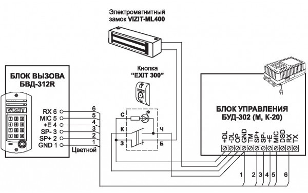 - блок вызова БВД-312R также используется совместно с блоком управления БУД-302(М, К-20, К-80) в составе многоквартирных домофонов VIZIT;
