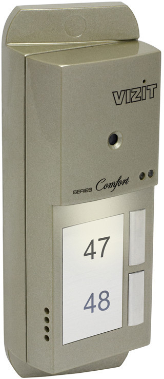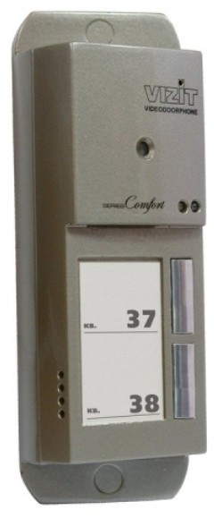 Блок вызова на 2 абонента. Встроенная телекамера цветного изображения. Подсветка кнопок вызова и шильдов. Подставка для поворота блока на 20 .