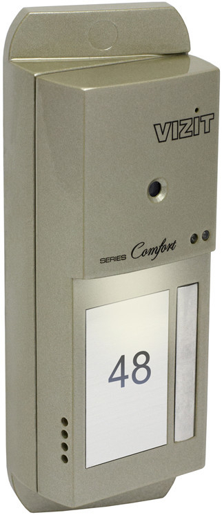 Блок вызова на 1 )абонента. Встроенная телекамера цветного изображения. Подсветка кнопок вызова и шильдов. Подставка для поворота блока на 20 .