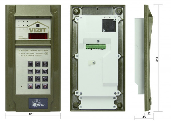 - встроенный считыватель ключей VIZIT-RF3 (RFID-13.56МГц);