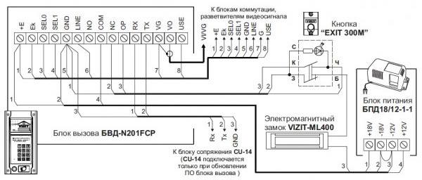 БВД-N201FCP - блок вызова домофона на 200 абонентов используется совместно с блоком питания БПД18/12-1-1 как составная часть многоквартирного видеодомофона VIZIT.