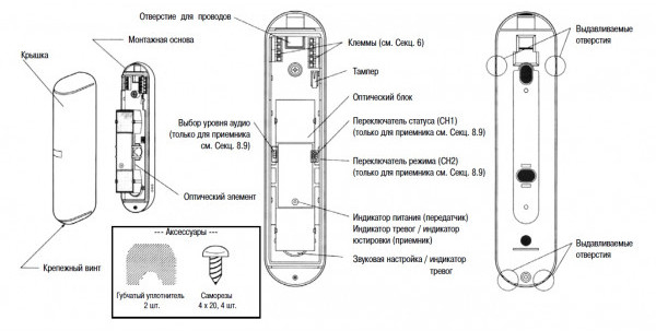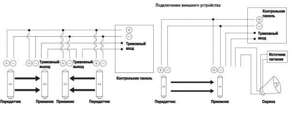 ИК активный, всепогодный до -35 град. С, дальность до 30 м на улице и до 60 м внутри, синхронизированный, двухлучевой, "сухие контакты " - н.з./н.о. реле, со встроенной сиреной, настройка по звуку
