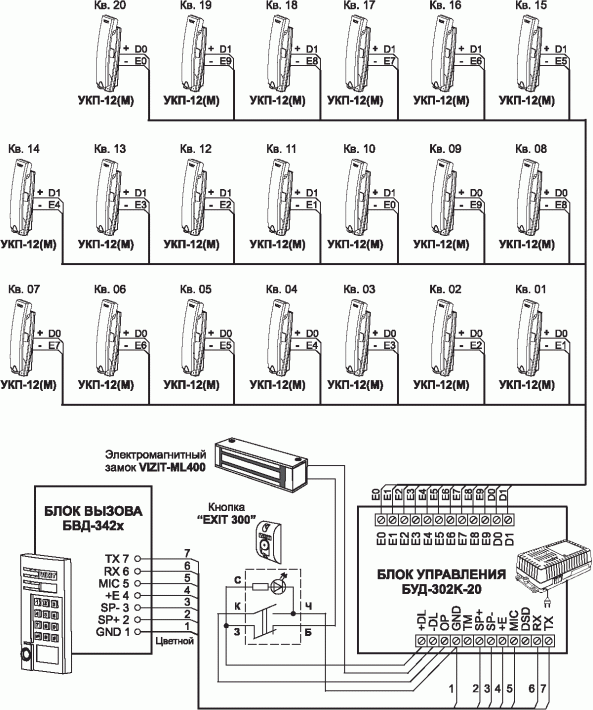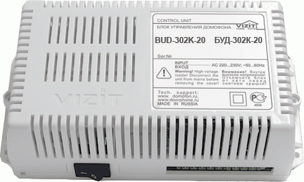 - блок управления домофона БУД-302M работает в комплекте c БВД-311x, БВД-312R, БВД-321x, БВД-341, БВД-342x, БВД-343х как составная часть домофона, видеодомофона VIZIT;
