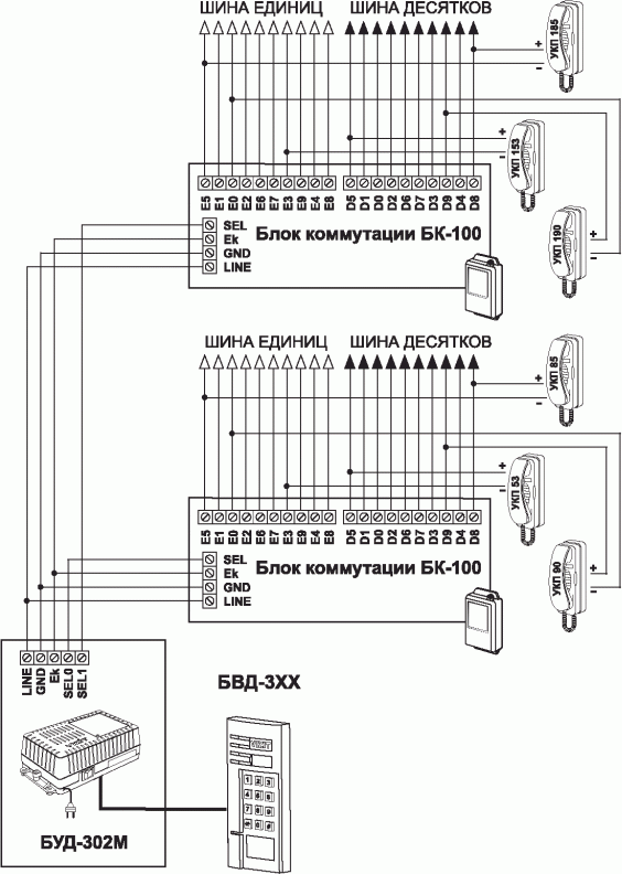 - блок управления домофона БУД-302M работает в комплекте c БВД-311x, БВД-312R, БВД-321x, БВД-341, БВД-342x, БВД-343х как составная часть домофона, видеодомофона VIZIT;