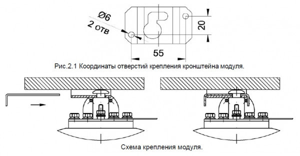 МПП через встроенное крепление устанавливается на потолок, балку и т.п.